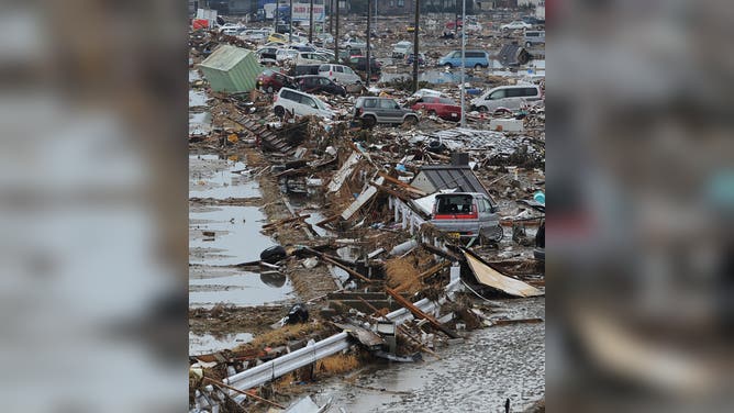 SENDAI, JAPAN: Debris after the tsunami following earthquake in Sendai, Miyagi, Honsu, Japan.