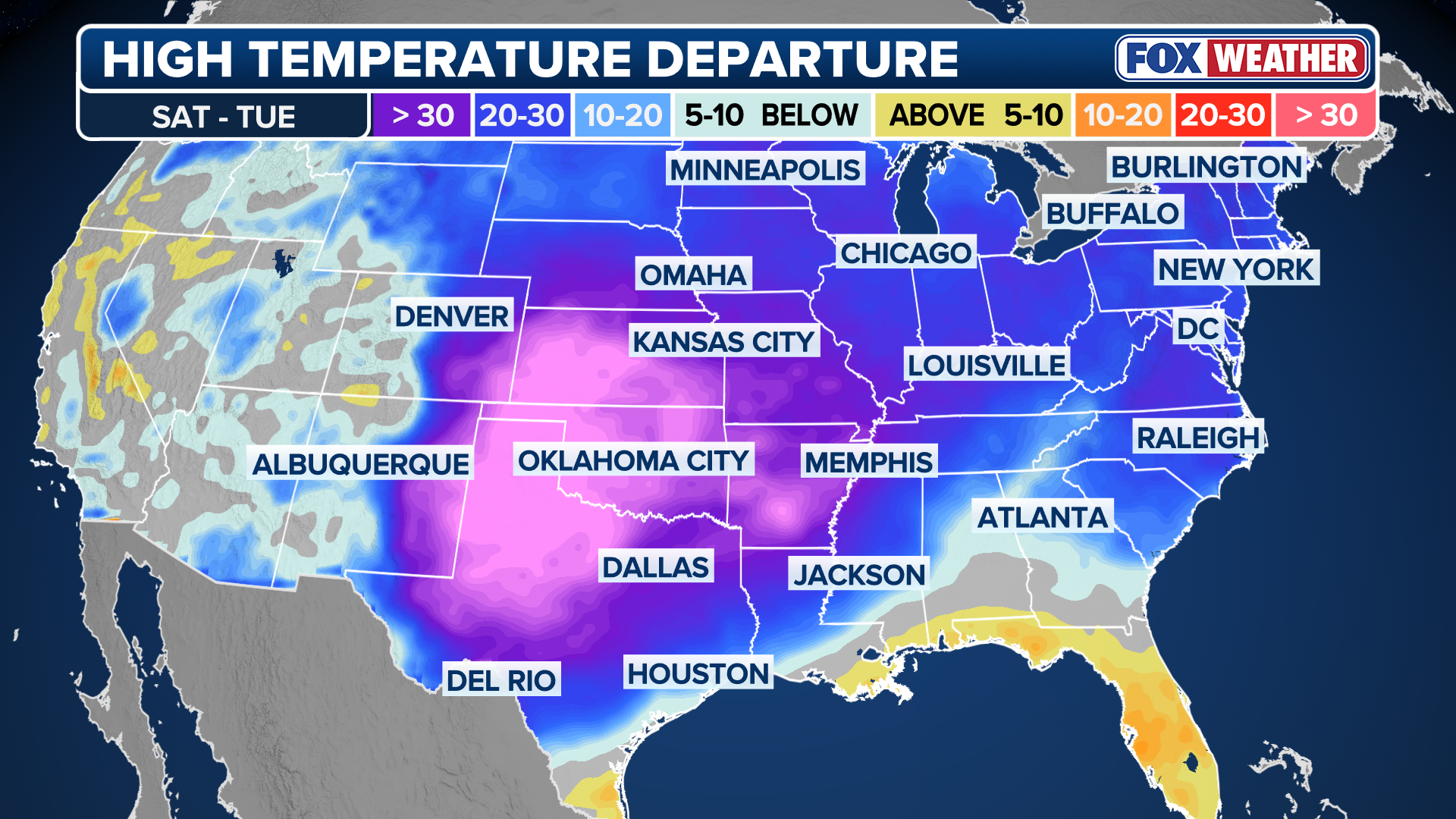 Along the East Coast, temperatures will struggle to rise above freezing through the weekend. Cities such as New York City may see highs only in the teens by Sunday, with wind chills making it feel closer to the single digits as more than 260 million Americans will experience below-average temperatures, and over 50 million could see readings drop below zero.