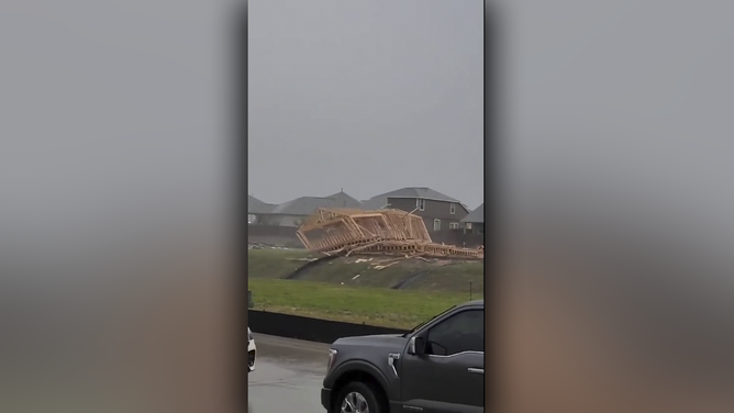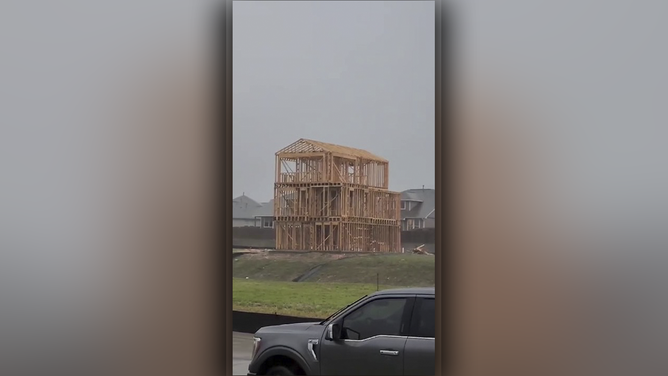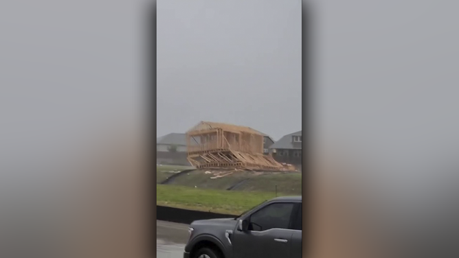 Watch: Hurricane-force winds topple budding dream home like popsicle sticks during Houston derecho