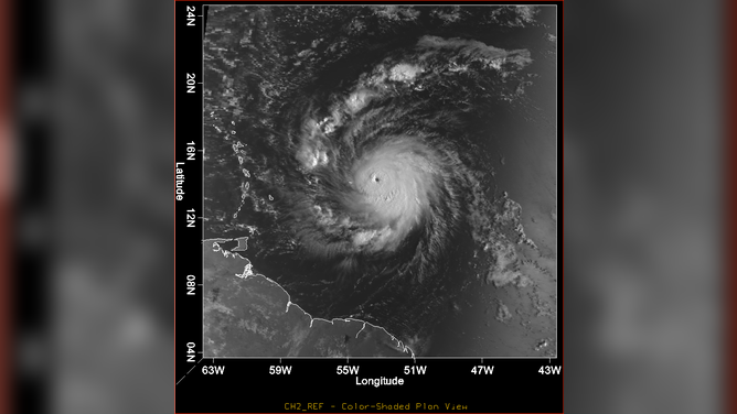 Visible satellite of Hugo on Sept. 11, 1989, from NOAA's polar orbiting satellites. Visible imagery is AVHRR Channel 2 (0.75 to 1.1 micron). (Photo: NOAA)