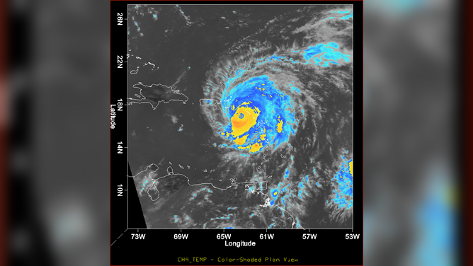 The next day, the storm moved over St. Croix and just hours later hit Puerto Rico. As it continued over Puerto Rico, the high terrain caused the storm to weaken, and maximum winds fell to 105 mph.