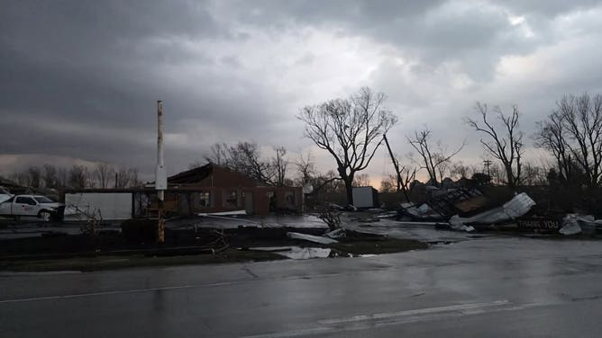 In a drone video obtained by FOX Weather, you can see several demolished structures, including the Fairview Courts Motel in Aroma Park.