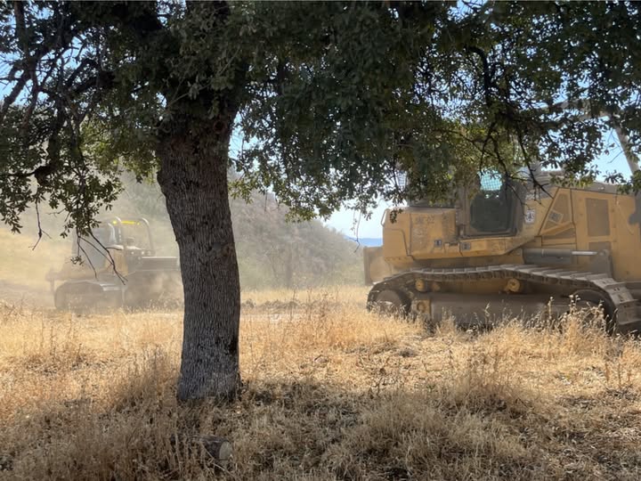 Bulldozers strengthen fire containment infrastructure in Fresno County.