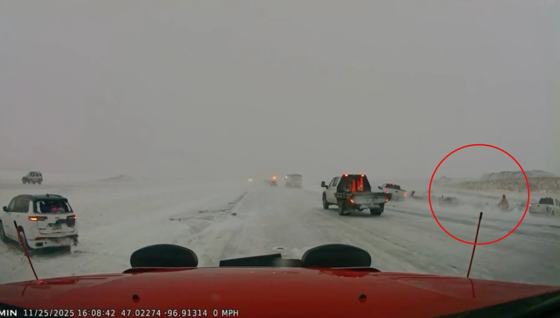 Watch: Reckless driver nearly hits North Dakota firefighters responding to crashes on snowy road