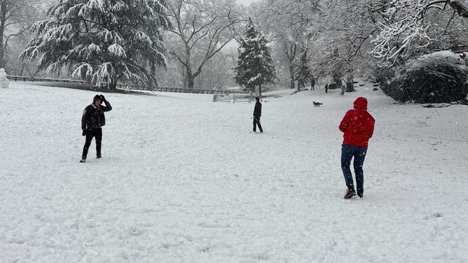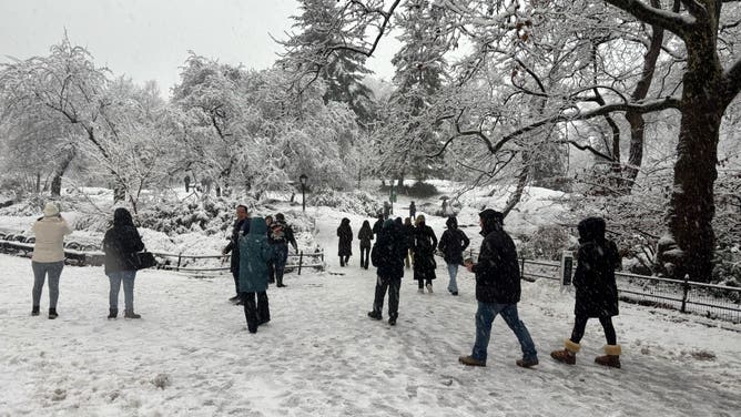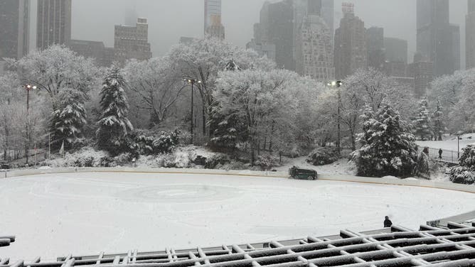 The snow is starting to accumulate on the ground and on benches at Central Park. FOX Weather's Haley Meier is here with the latest on snowfall in New York City.