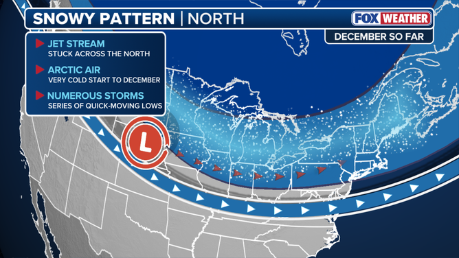 States in the Northern Tier — including New England — are experiencing a quick start to the snowy season. The FOX Forecast Center said it's partly due to the position of the jet stream, which allows for repeated surges of moisture. The jet stream's more southerly placement has also opened the door for Arctic air to sneak in.