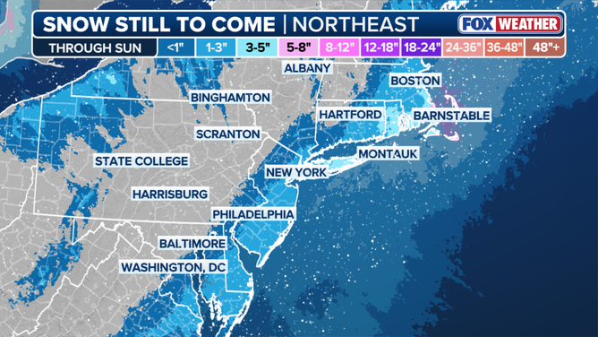 The snow isn't quite over yet. Snow is still coming down in some states, including Connecticut, New York, Massachusetts, Pennsylvania, Maryland and more.
