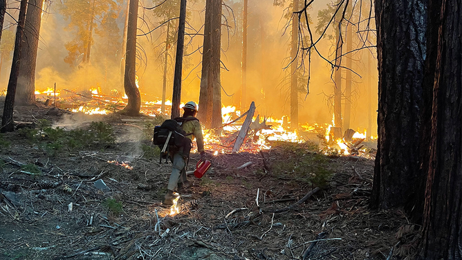 Firefighters are taking a multitude of measures to help fight the Washburn Fire in Yosemite National Park, including installing sprinklers to protect their most sacred sequoia trees.