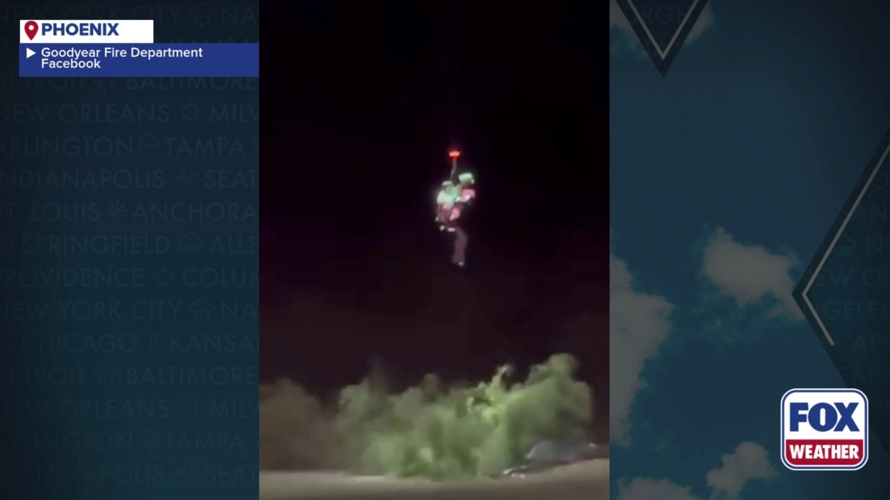 Watch: Phoenix rescuer lifts trapped driver out of fast-moving floodwater