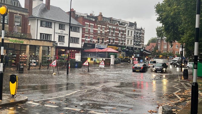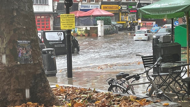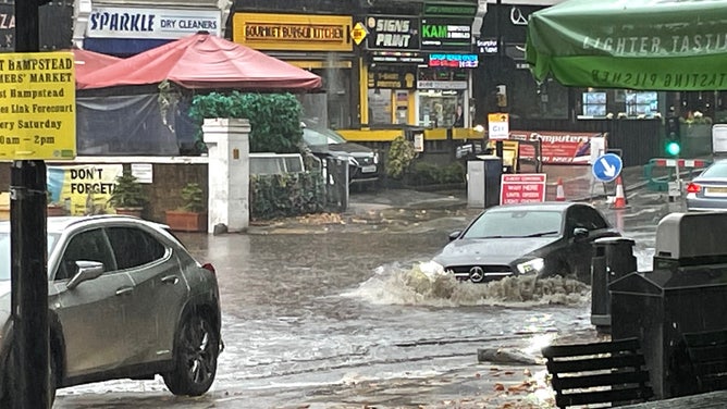 The road turned into a river in London's West Hampstead neighborhood. Water, inches deep, surrounded cars and threatened shop owners.