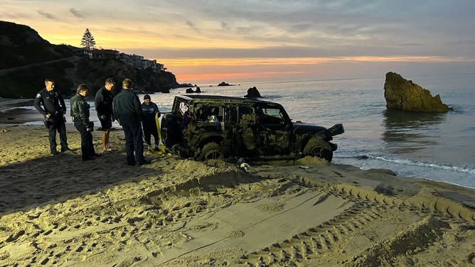 It's unclear how the Jeep originally got on the beach and became entangled in the waves. Corona Del Mar is not among the few California beaches people can drive on.