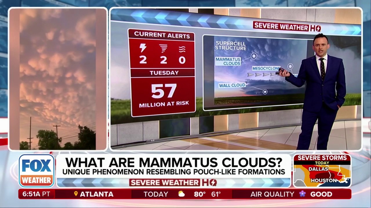 Have you ever seen a ceiling of clouds with bumpy, pouch-like formations hanging down? Those are called "mammatus clouds." FOX Weather Meteorologist Ari Sarsalari explains how they form and whether they are a sign of a large storm nearby.