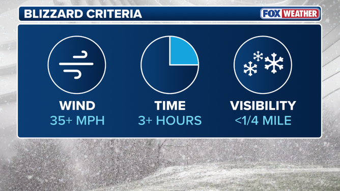 While heavy snow and severe cold temperatures are often part of blizzard conditions, they are not required. A blizzard is achieved when winds are at 35 mph or higher for three or more hours with visibility less than a quarter of a mile.