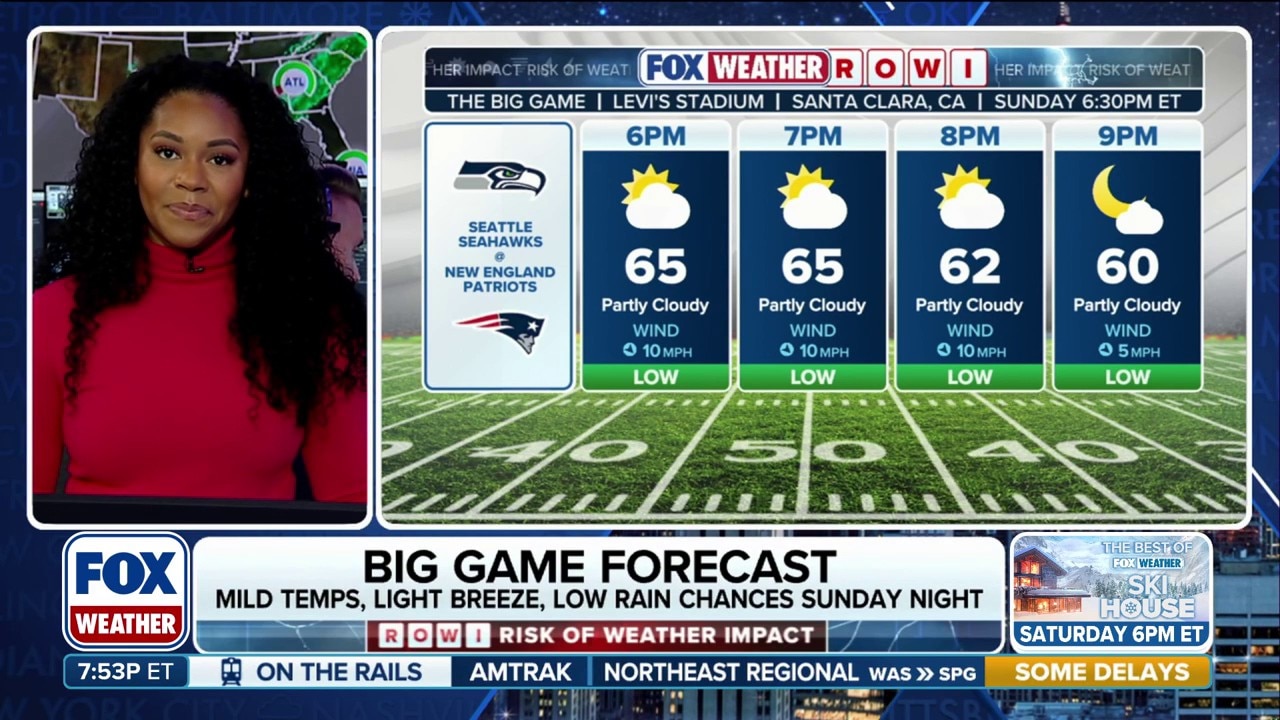 FOX Weather Meteorologist Kiyana Lewis looks ahead to the ROWI risk for the big game this weekend in the NFL as the Seattle Seahawks face the New England Patriots.
