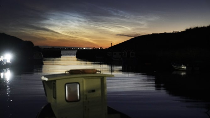 Rare noctilucent clouds shine brightly across Whitley Bay beach over St Mary's Lighthouse on the North East coast overnight, as heavy rain is predicted to lash parts of the UK again as flood-hit communities continue to clear up after last week's downpours. (Photo by Owen Humphreys/PA Images via Getty Images)