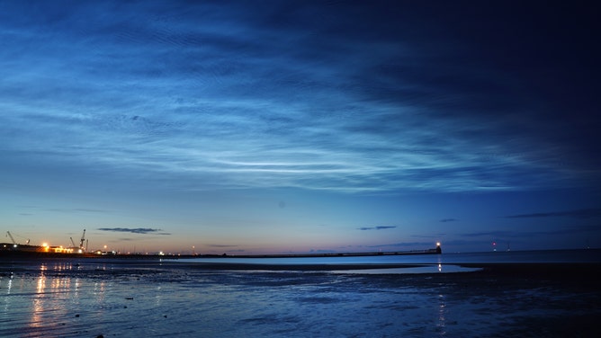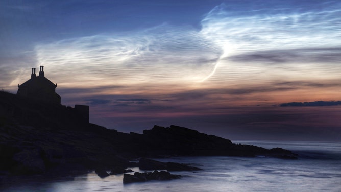 Noctilucent clouds gather over Whitley Bay above St Mary's Lighthouse in the early hours. (Photo by Owen Humphreys/PA Images via Getty Images)