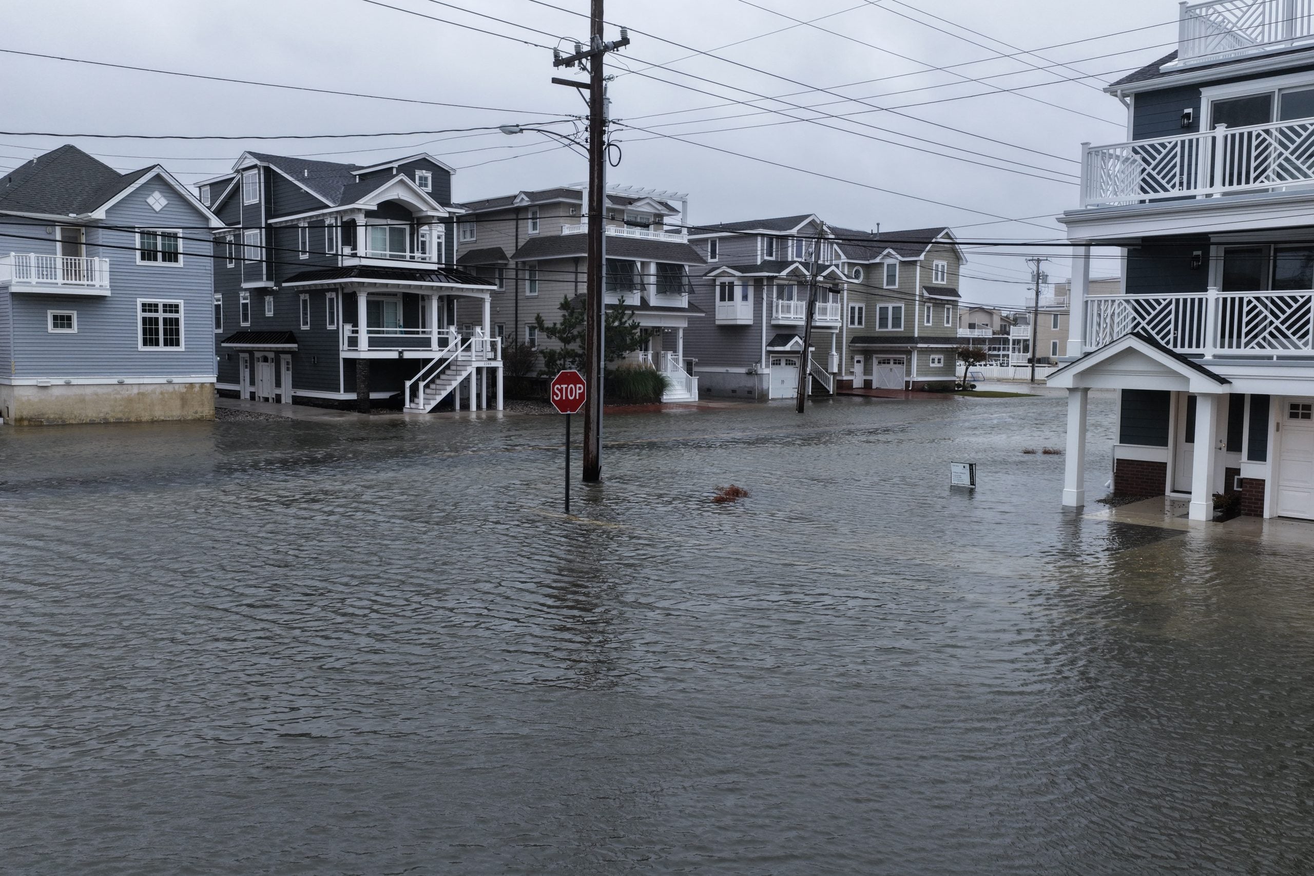 A powerful nor'easter brings coastal flooding to the Jersey Shore on Sunday afternoon, with high tide sending water over docks and into streets in Avalon, New Jersey, United States on October 12, 2025.