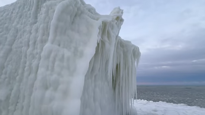 Drone footage captured a rare sight on Dec. 15, as frigid temperatures allowed pancake ice to surround the North Pier Lighthouse on Lake Michigan.