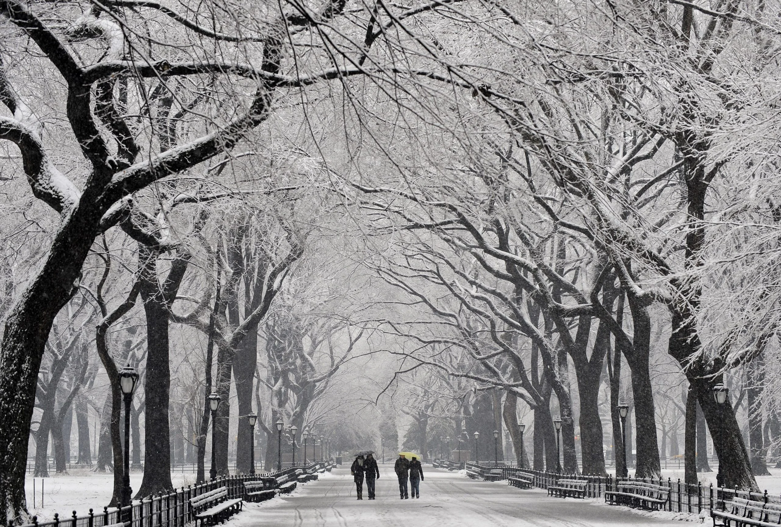 People stroll through Central Park in New York, February 25, 2010 as the the region is hit with another storm which could drop as much as a foot of snow in New York City and parts of the metropolitan region.