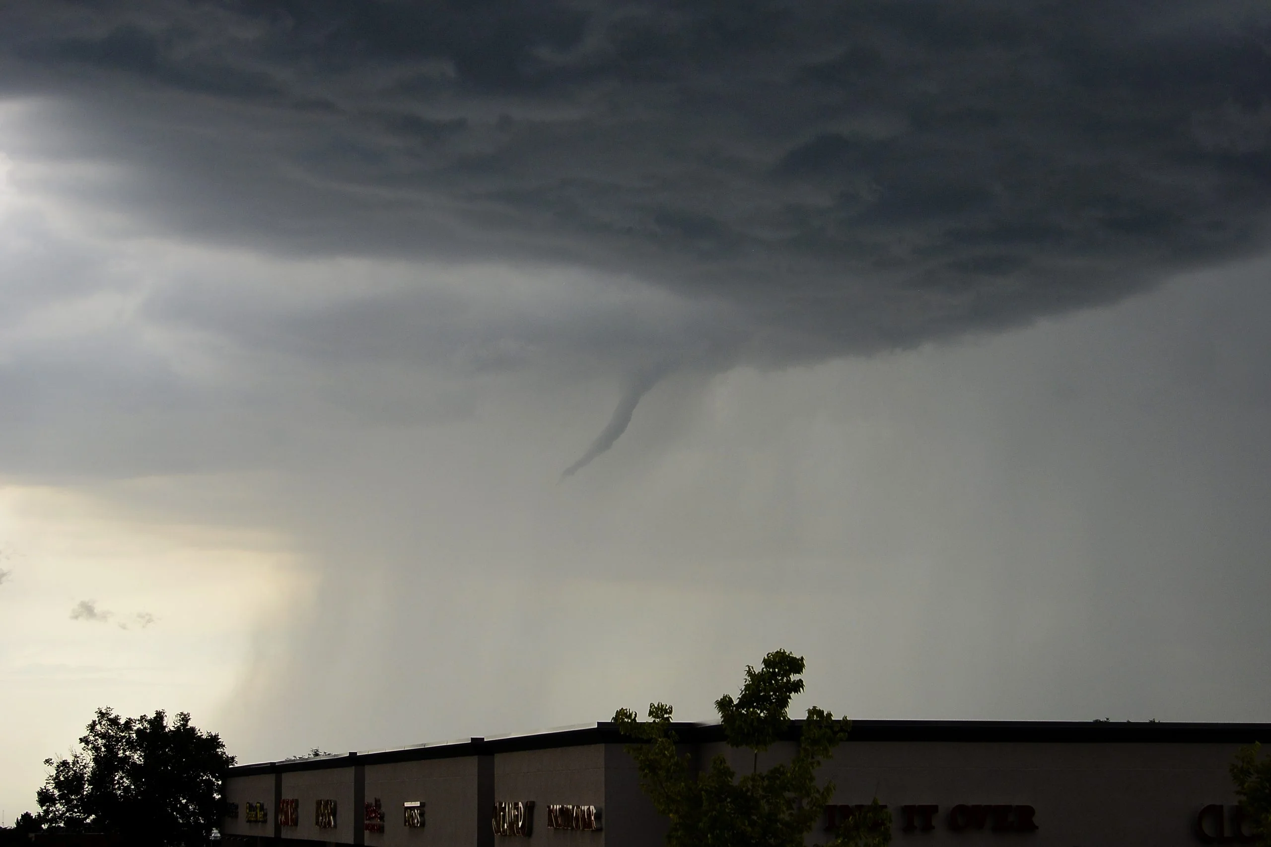 ENGLEWOOD, CO - AUGUST 11: Funnel cloud comes out of the clouds as storms brew August 11, 2015. (Photo By via Getty Images)