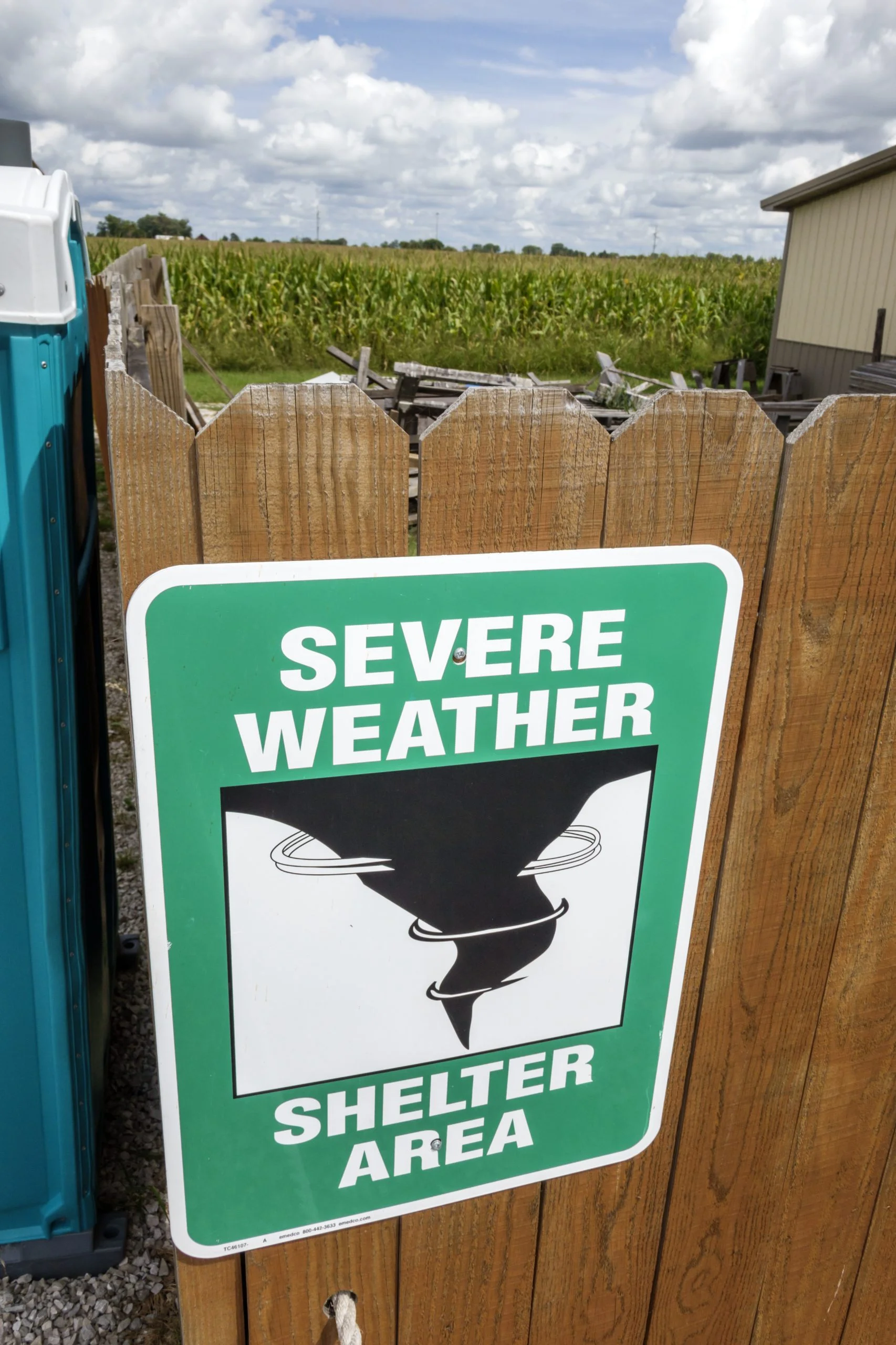 Tornado severe weather shelter sign at Mount Olive.