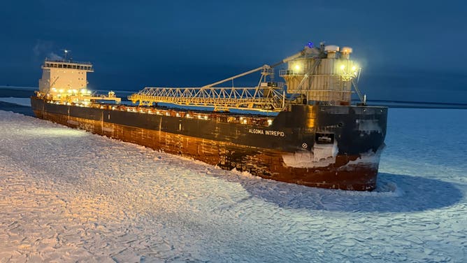 The Algoma Intrepid, a boat that was freed from ice on Lake Michigan by the USCGC Mackinaw on Jan. 25, 2026.
