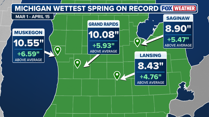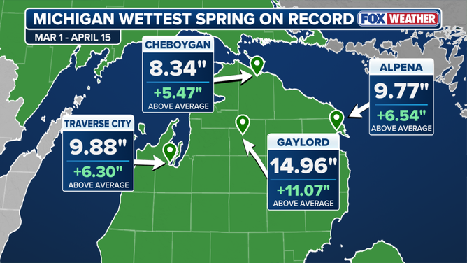 Traverse City, Michigan, has seen nearly 10 inches of precipitation since March 1. That's more than double their usual 3.5 inches for that time period, according to the FOX Forecast Center.