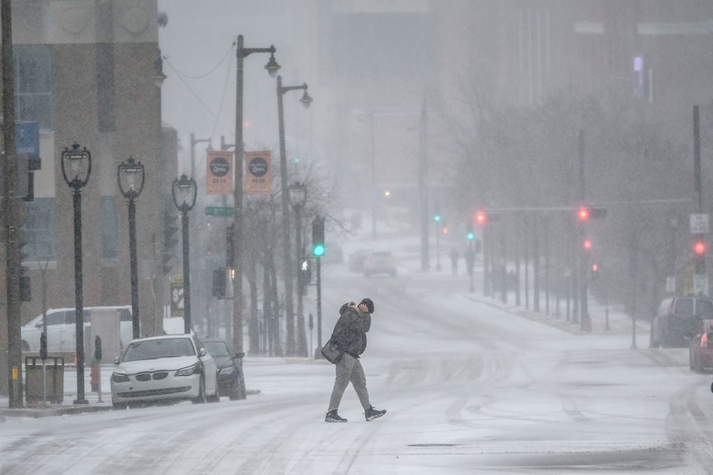 People commute in downtown Milwaukee as Wisconsin braces for a winter storm that in the coming days could bring blizzard conditions, causing possible power outages, and make holiday travel conditions dangerous. The storm watch is in effect Thursday through Saturday with cold air and wind gusts up to 50 mph, according to the National Weather Service. (Photo by Alex Wroblewski for The Washington Post via Getty Images)