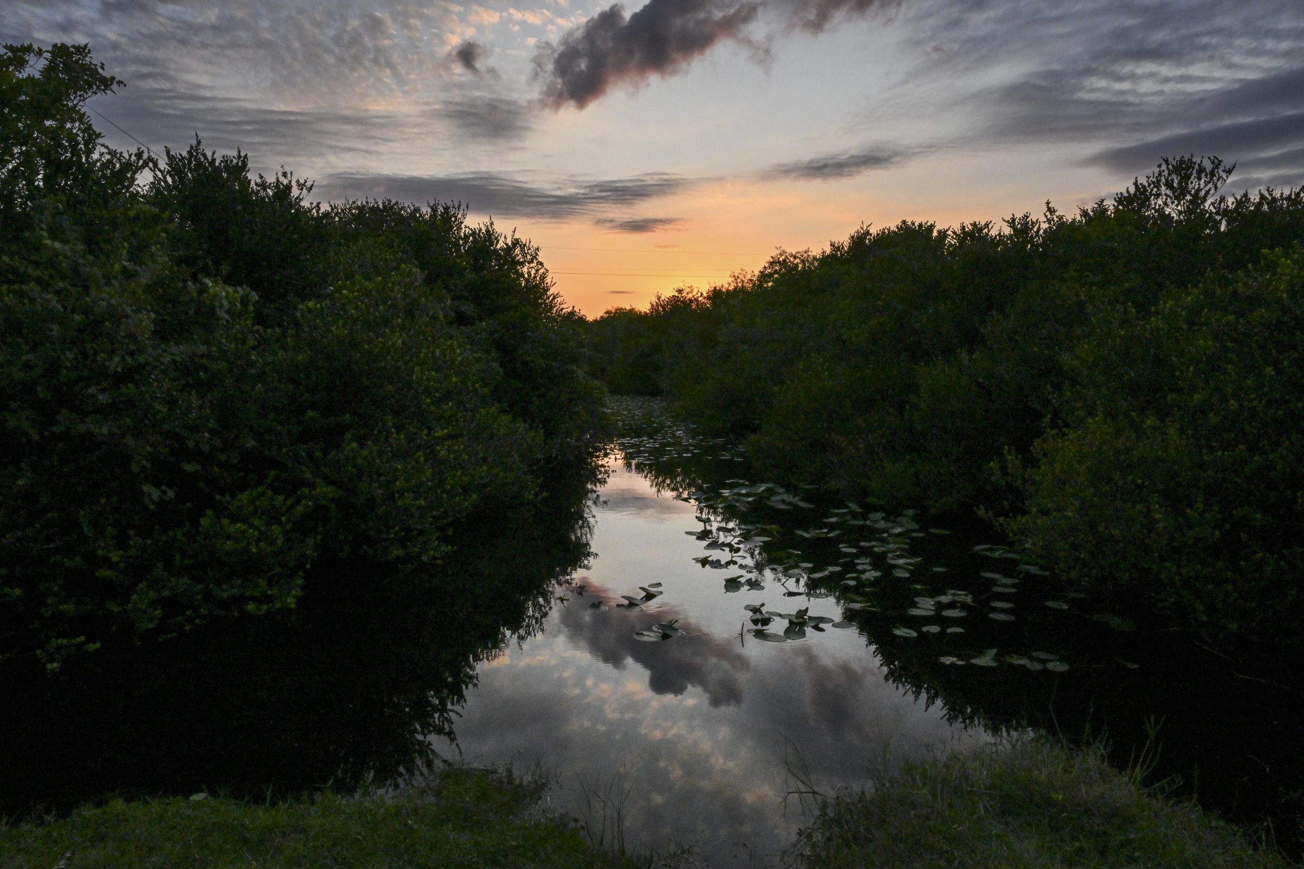 Wetland plants are seen at dusk on Earth Day at Everglades National Park, Florida, April 22, 2024.
