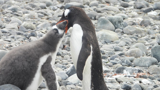 "There were some baby penguins who were like five weeks old," Mark said. "But there was a mom who was feeding them--- feeding one of her kids… and she got sick of feeding. And so she turned and started running away with the little baby following after -- just running after her.