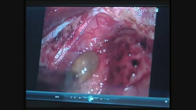 "Here's the lump. And at this point, it still looks like a brain tumor. And so we're just opening up to see inside," Dr. Peter Nakaji said, showing the reporter a video of the operation. " So you can see here just sort of sucking some of the interior out."