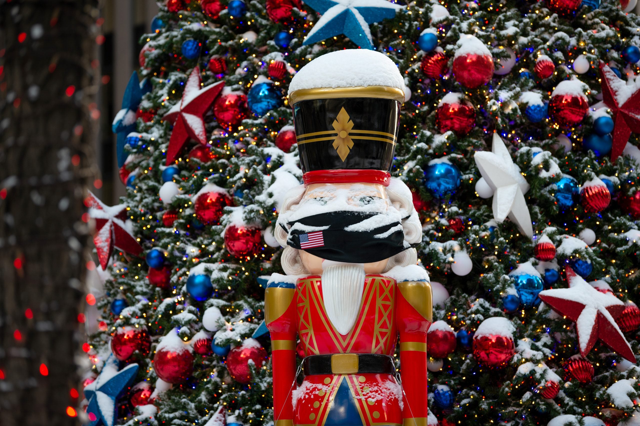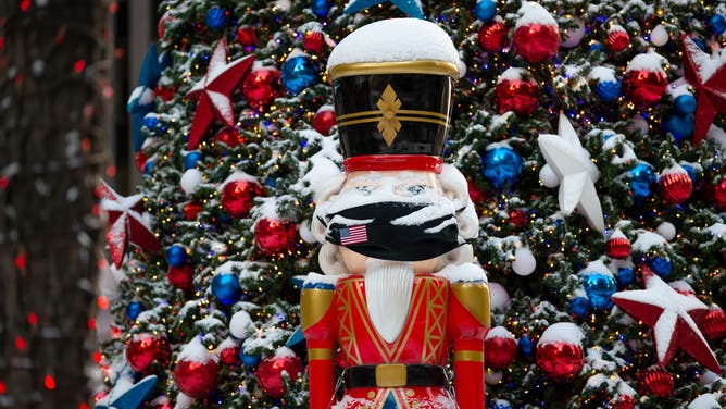 NEW YORK, NEW YORK - DECEMBER 17: A nutcracker in front of a Christmas tree outside News Corporation is covered in snow during a snow storm on December 17, 2020 in New York City. New York City received 6 to 8 inches of snow in an overnight storm that resulted in local power outages and transportation delays during the first North Eastern storm of the season. The pandemic continues to cause long-term repercussions throughout the tourism and entertainment industries.