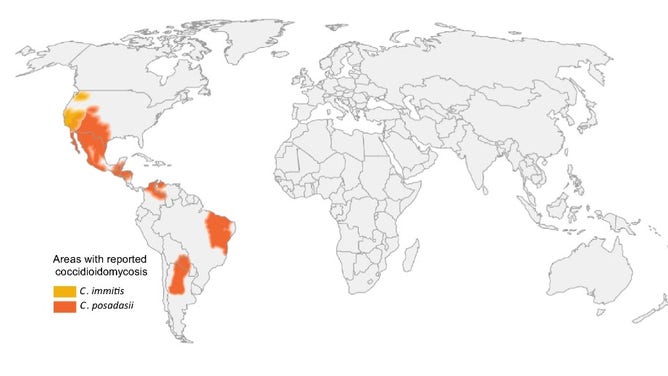 The CDC estimates that the Coccidioides fungus lives as far north as Washington state and as far east as Texas.