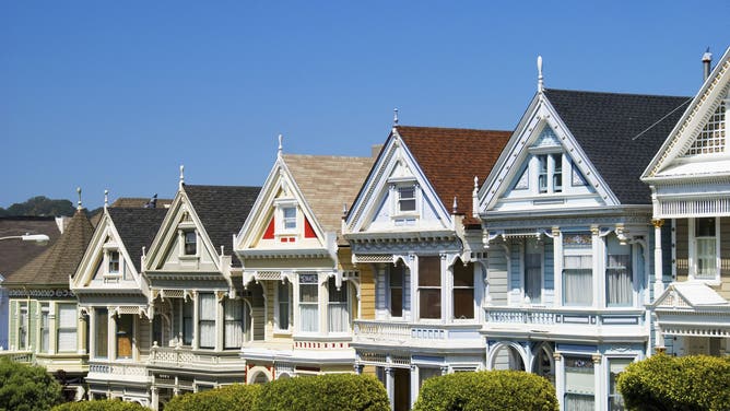 San Francisco's Painted Ladies A Row Of Colorful Victorian Houses; San Francisco, California, United States of America.