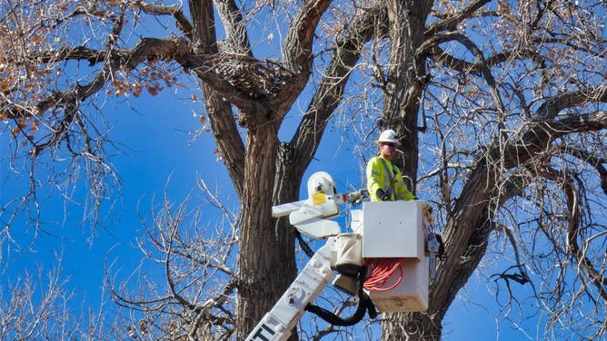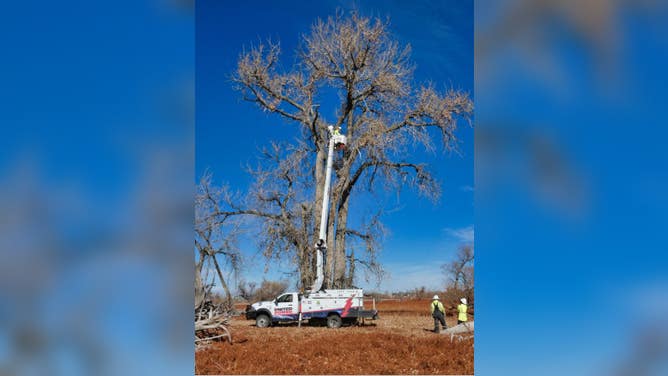 Crews reinstalled the basket Friday after the cottonwood tree holding the original nest fell down during gusty winds in April, destroying two eggs.