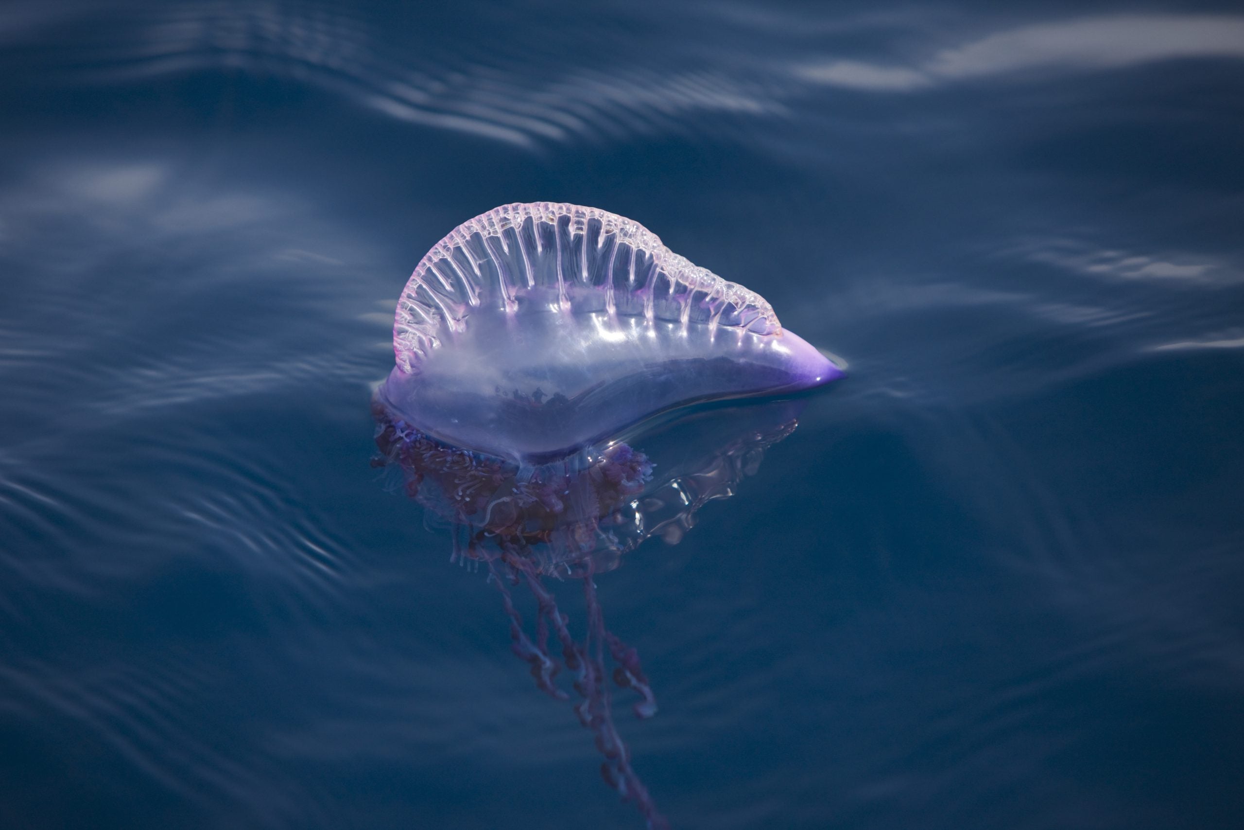 Though the dangerous sea creature might look inviting thanks to its intriguing color and innocuous shape, experts warn to keep your distance from a man o' war if you come across one.