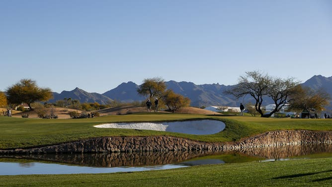SCOTTSDALE, ARIZONA - FEBRUARY 10: A general view of the 15th green is seen during the continuation of the first round of the WM Phoenix Open at TPC Scottsdale on February 10, 2023 in Scottsdale, Arizona. (Photo by Sarah Stier/Getty Images)