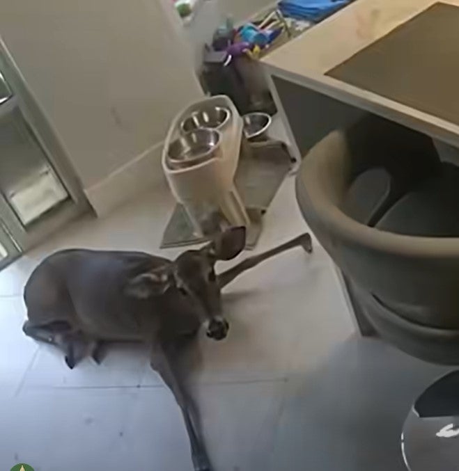 Body camera footage shared by the Orange County Sheriff’s Office shows the deer immediately freak out and run in place before falling due to the lack of friction on tile floors.