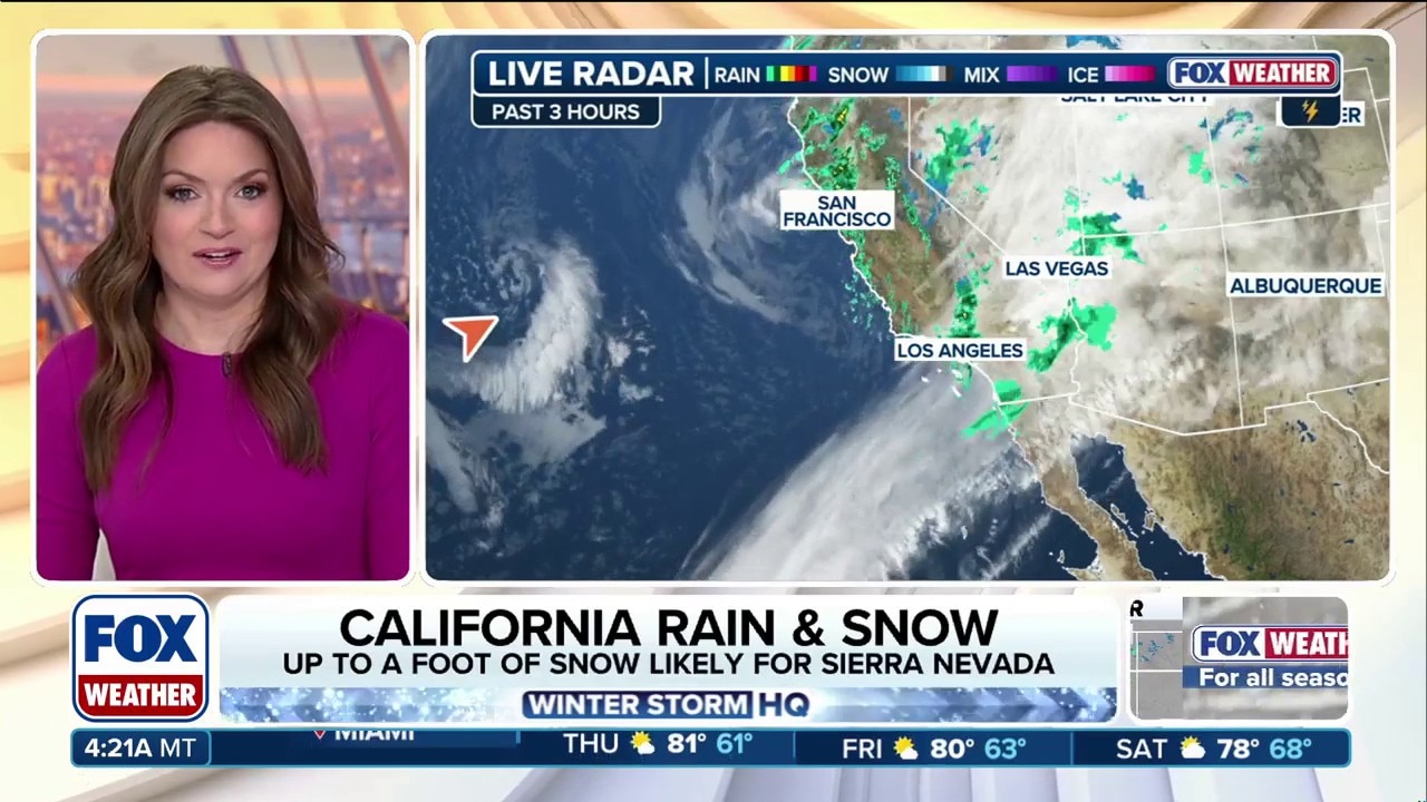 After weeks of dry weather, California is finally beginning to receive much-needed rain. San Francisco and Los Angeles could see up to 1 inch of rain by Thursday. Flash flooding is possible, particularly near burn scars from last year's devastating wildfires. Up to a foot of snow is forecast for parts of the Sierras through Wednesday. Many parts of the mountain range are sitting at just 50 percent of their typical snowpack season to date. This snow is key for ski resorts, as well as water supply for drinking and agriculture in the summer months.