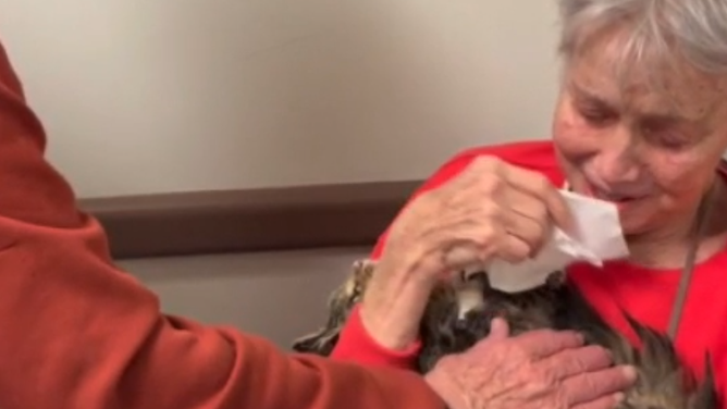 Watch the emotional moment when a Los Angeles woman reunited with her cat two months after Palisades Fire.