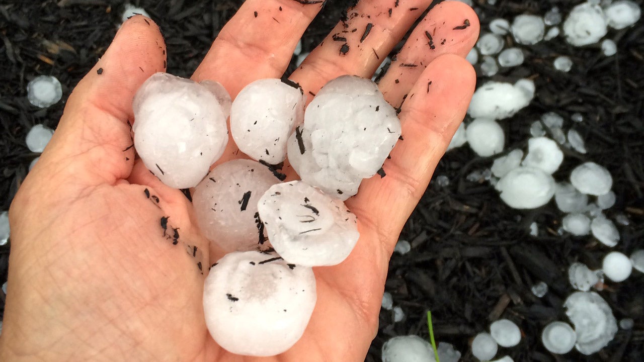 Storm reports indicate a wide range of hail sizes in the hardest-hit areas.
