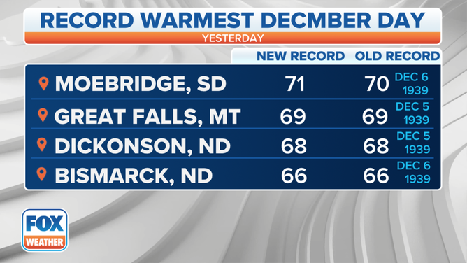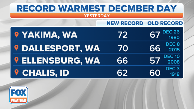 All-time December record highs were also broken in Idaho, South Dakota, North Dakota and Montana on Wednesday.
