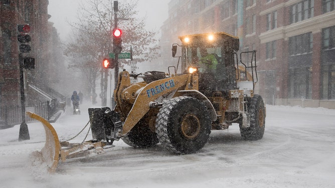 A snowplow works to keep up with a winter storm as it bears down on January 29, 2022, in Boston, Massachusetts. A powerful nor’easter brought blinding blizzard conditions with high winds causing widespread power outages to much of the Mid-Atlantic and New England coast. The storm is predicted to drop over 2 feet of snow in some areas.