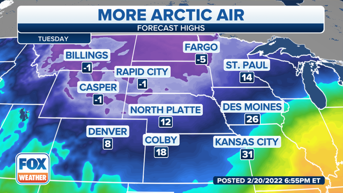 Arctic air will cause temperatures to dip as low as 40 degrees below average in the northern Plains.