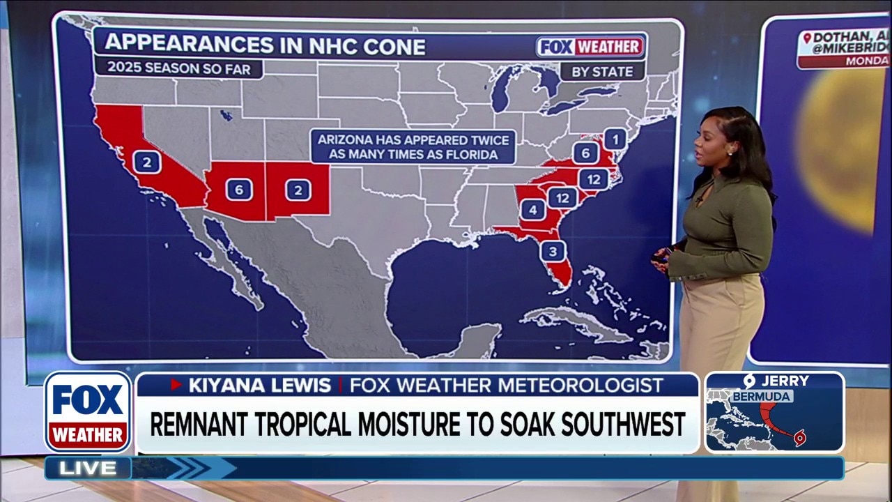 Arizona appears in NHC cone twice as often as Florida in 2025 so far