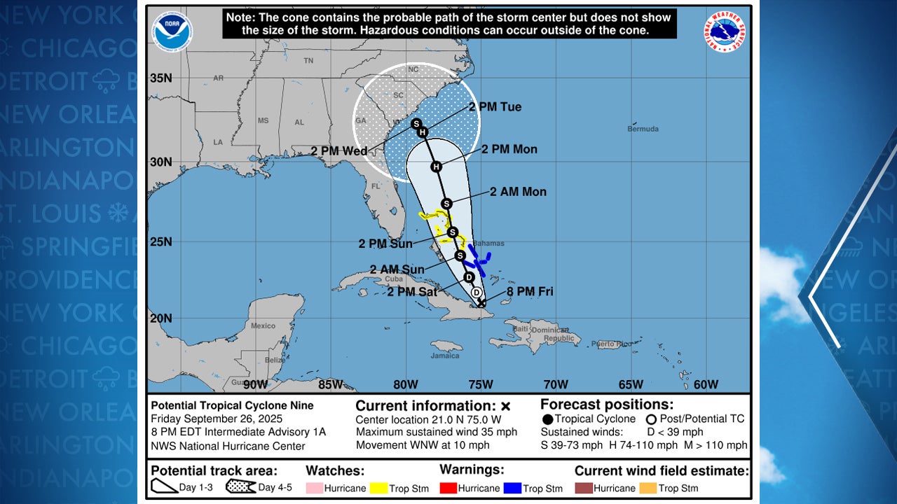 North Carolina and South Carolina lead the U.S. so far with 12 NHC cone placements.