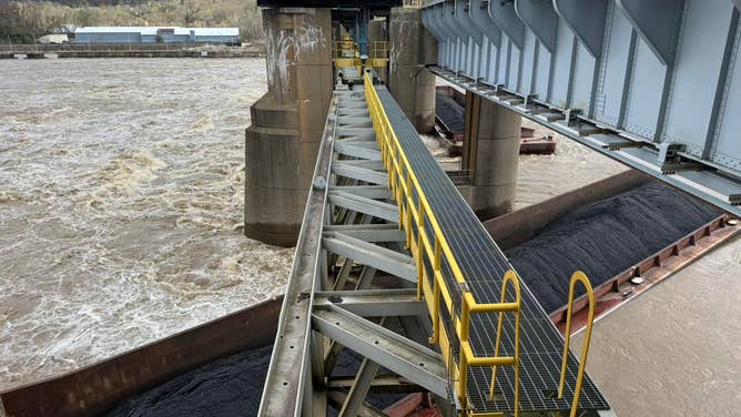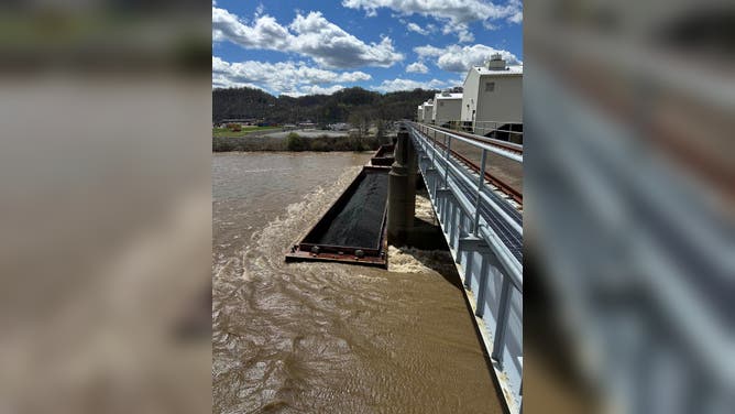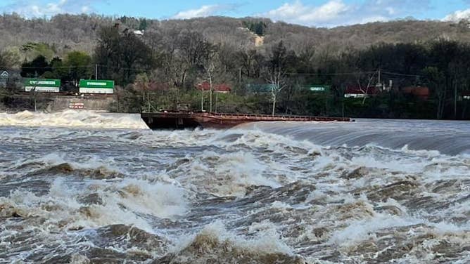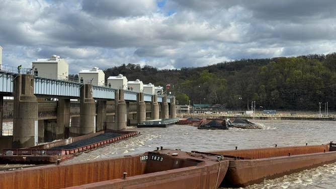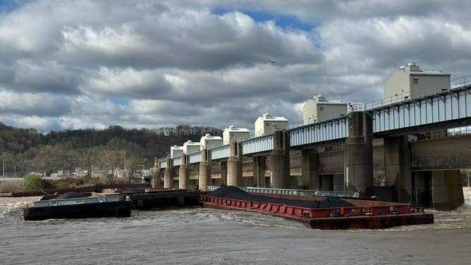 According to the U.S. Army Corps of Engineers, the coast guard secured nine barges at the lock and dam. As of Saturday afternoon, only one had been removed. One empty barge sunk, and six barges went over the dam, according to public safety officials. Another of the secured barges broke free again Saturday.