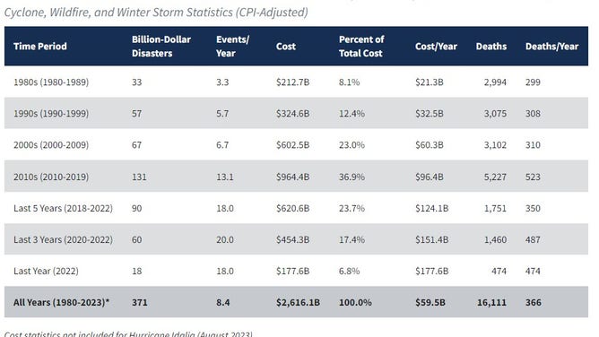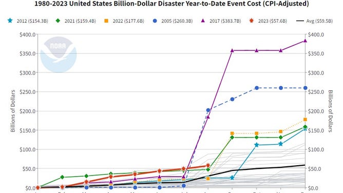 Disaster total on the list is $52.9 billion to date without Idalia.