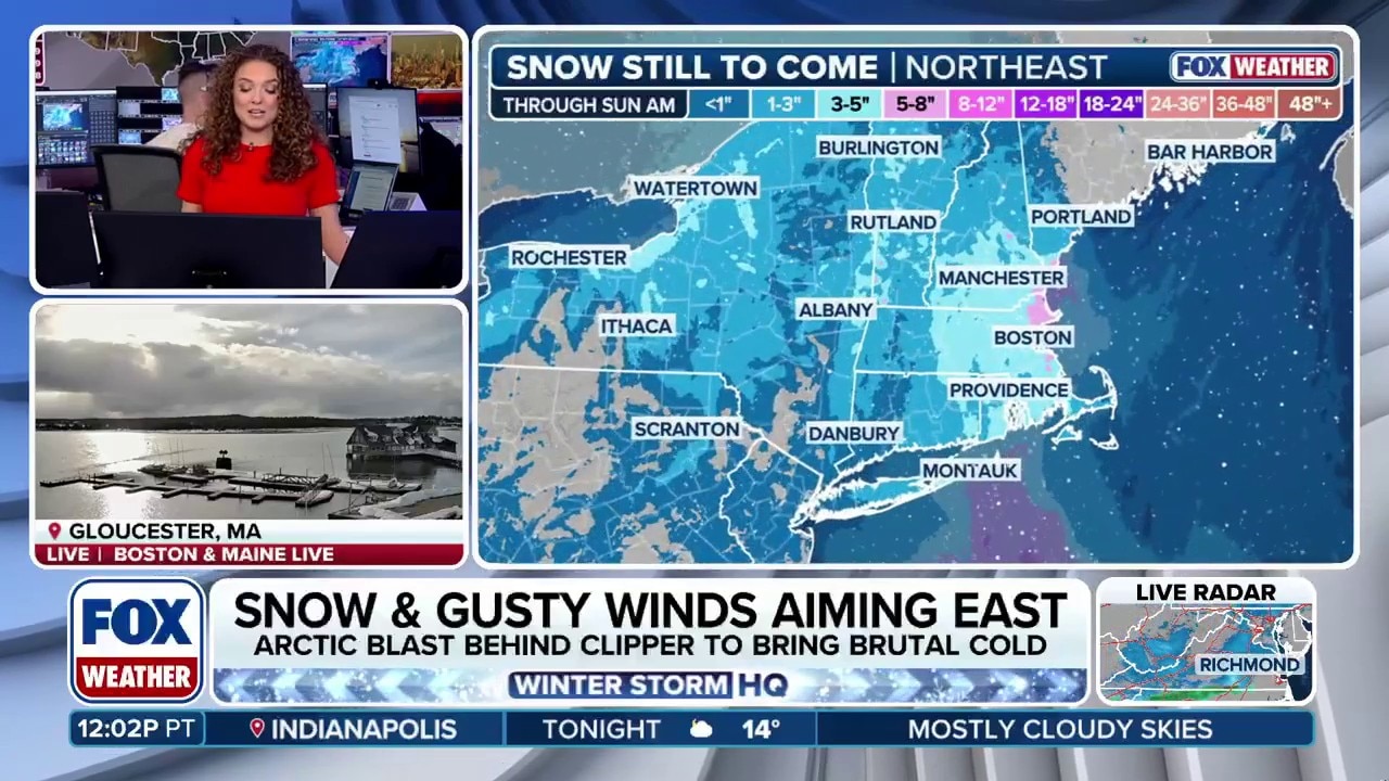 The snow forecast for Boston and other parts of eastern Massachusetts is rising as a clipper system takes aim at the Northeast this weekend, driving in another blast of arctic air. Boston could see between 3-5 inches of snow, with Massachusetts' North Shore possibly seeing 6+ inches by Saturday afternoon.