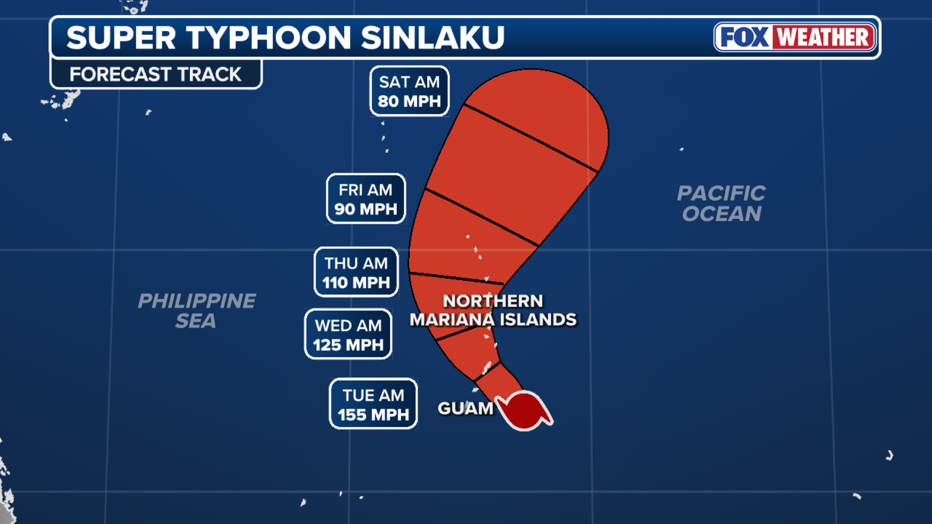 Besides the computer models promoting an El Niño, the weather pattern across the western Pacific seems to be falling in line as well. Massive Super Typhoon Sinlaku — a super typhoon is equivalent to a strong Category 4 or Category 5 hurricane — is pressing in on the islands north of Guam. The U.S. territories of Saipan and the surrounding islands are near the center of the track. Impact time looks to be late tomorrow their time.